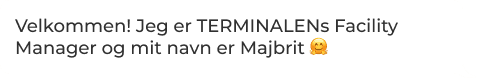 Majbrit er TERMINALENS Facility Manager – eller som vi plejer at sige: TERMINALENS mor. Hun hjælper med alt det praktiske i hverdagen og står altid klar med både gode råd og en hjælpende hånd.